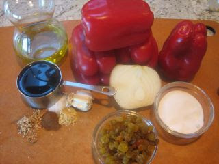 My fellow blogger, Luisa, the Wednesday Chef, wrote up this recipe, having read it in the Los Angeles Times (no longer available online). In her post she used many, many superlatives. I usually stand up and notice when bloggers use words like fabulous, fantastic, can’t keep my spoon out of them. That kind of language. Since I had some leftover meatloaf (obviously cold), this recipe seemed like a cinchy combination. I had everything on hand except the red bell peppers, and that was easily rectified.